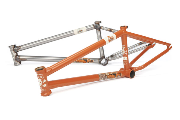 This is the latest version of Reed Stark's signature Safari frame, now updated with a shorter 12.8–13.2" rear end, which is half a link shorter than the previous version. It also features our Superscoop chainstay tubing for extra tire clearance when your wheel is slammed. The Safari frame is designed to Reed's specifications, with a super long front end paired with a short back end and a standard head angle. Simple, yet effective!