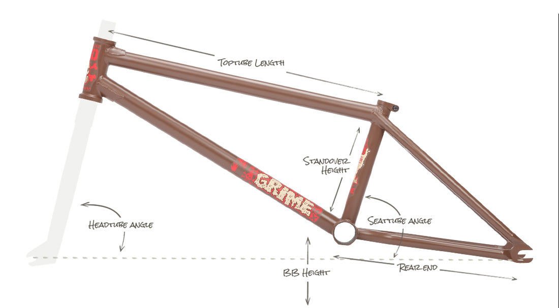 Denim Cox is a wild man, and the Grime frame is built to handle the abuse he dishes out every day! "MORE SPEED, LESS DOUBT!" Designed to Denim’s specifications, it features a steep 75.5° head angle, a 12.8–13.2” rear end length with an invest-cast chainstay yoke for added tire clearance, and a 9” standover height.