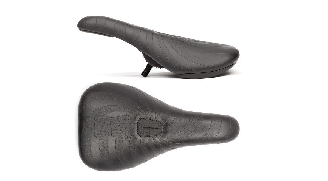 The BSD Focus Seat is Gaspar Guendulain's signature slim Pivotal seat, featuring a sleek design with a subtle psychedelic swirl debossed pattern.